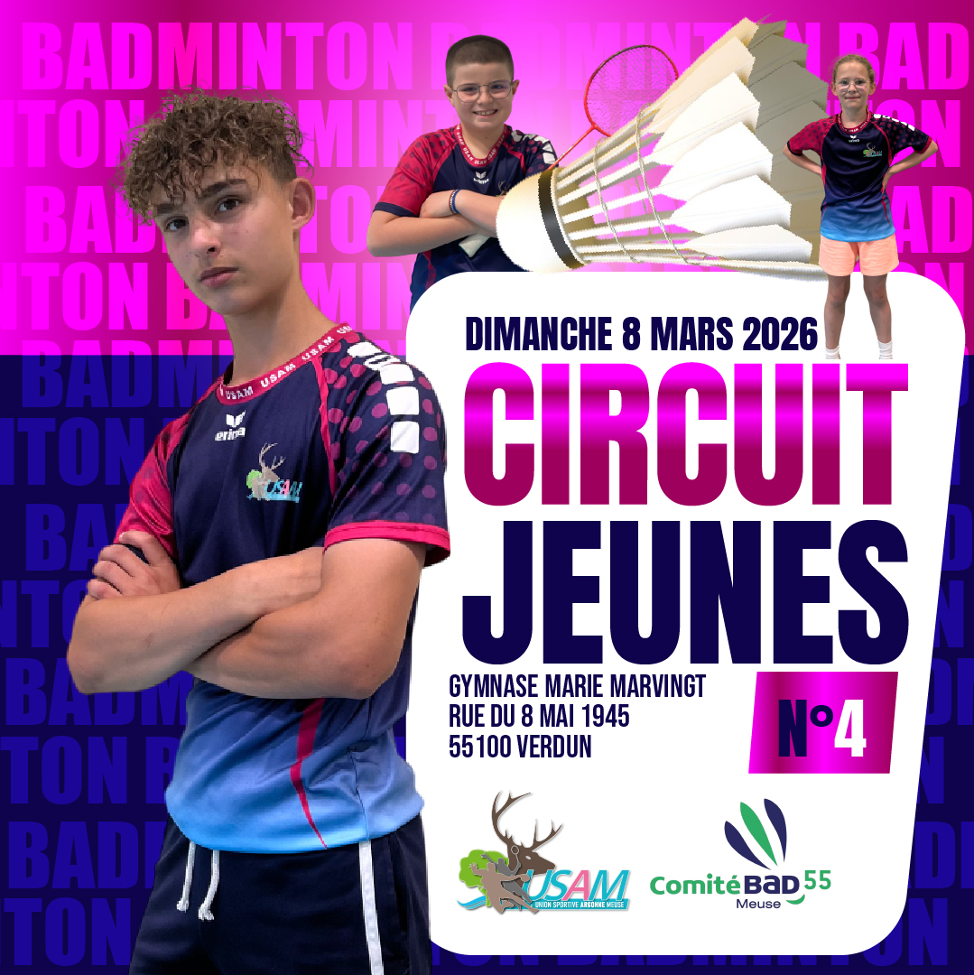 Publié le 6 mars 2026 par Mickaël PrintzNos jeunes badistes seront sur les terrains de Verdun au circuit départemental jeunes n°4 ce dimanche !