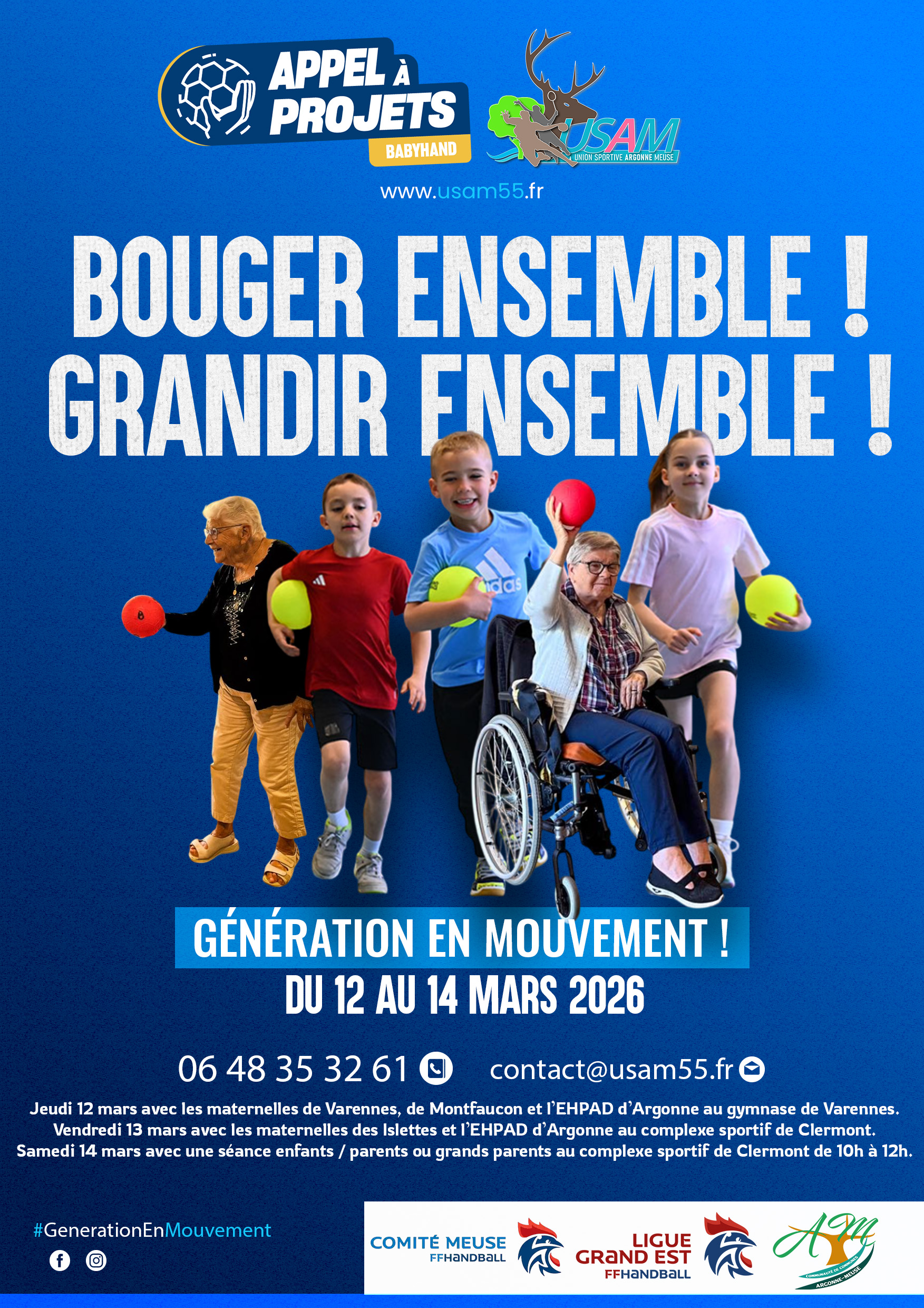L’USAM accueille depuis aujourd’hui les maternelles de Varennes, de Montfaucon, des Islettes et les résidents de l’EHPAD d’Argonne pour 2 jours autour de la pratique du baby hand dans le cadre de l’appel à projets Fédération Française de Handball !